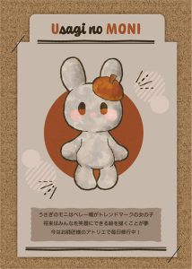 前回からタイトルなどで登場させているこのうさぎさん、、、五十嵐のオリジナルキャラクター、モニちゃんです!