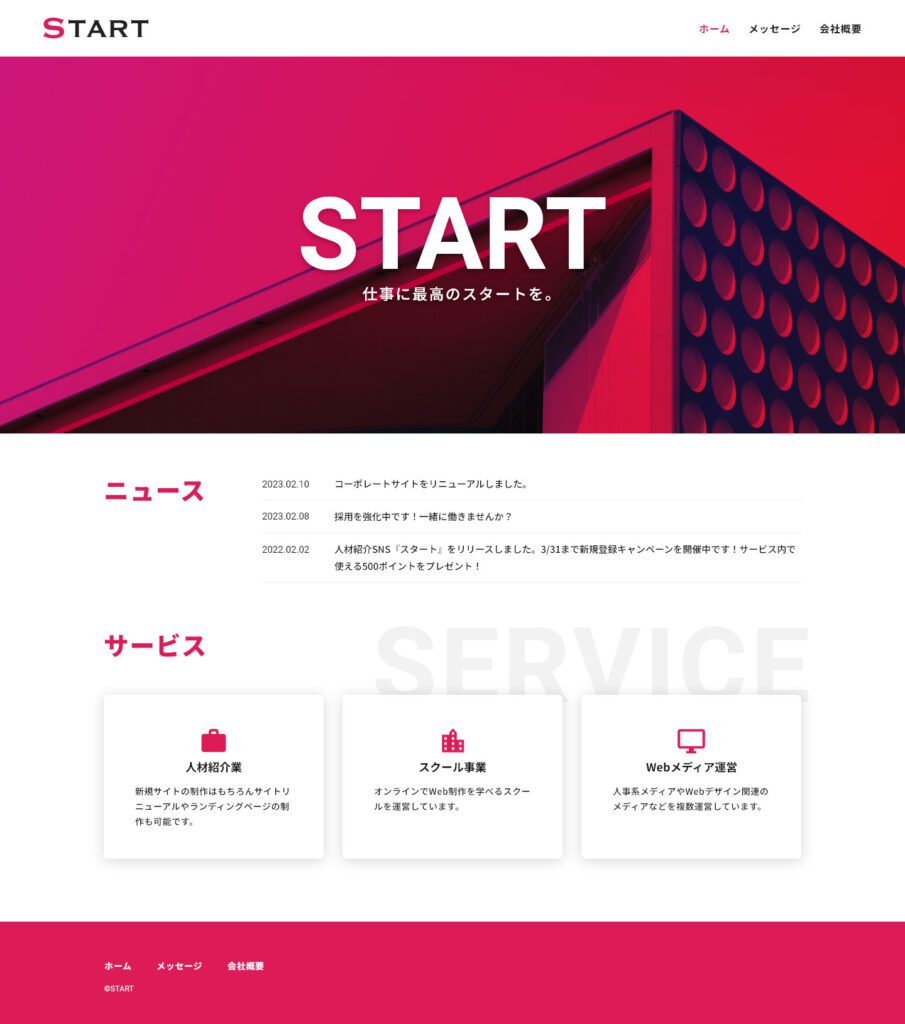 ・h1は「START」pタグには「仕事に最高のスタートを」