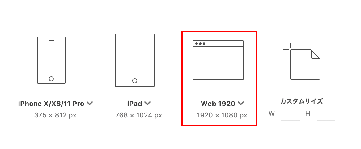 この記事では、アップワードのWebサイトのワイヤーフレームを起こしていこうと思うので、PC画面のサイズを選択しました。
