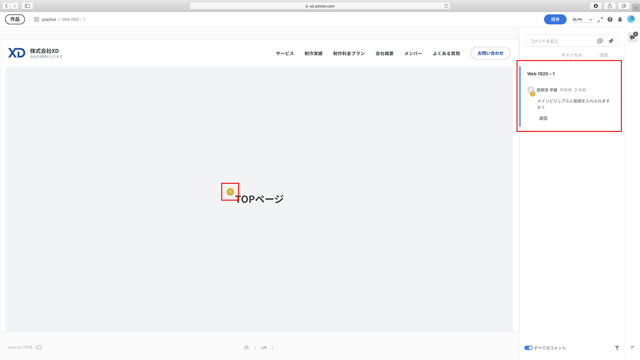 さらにXDのプレビュー画面には、コメント機能もあります。