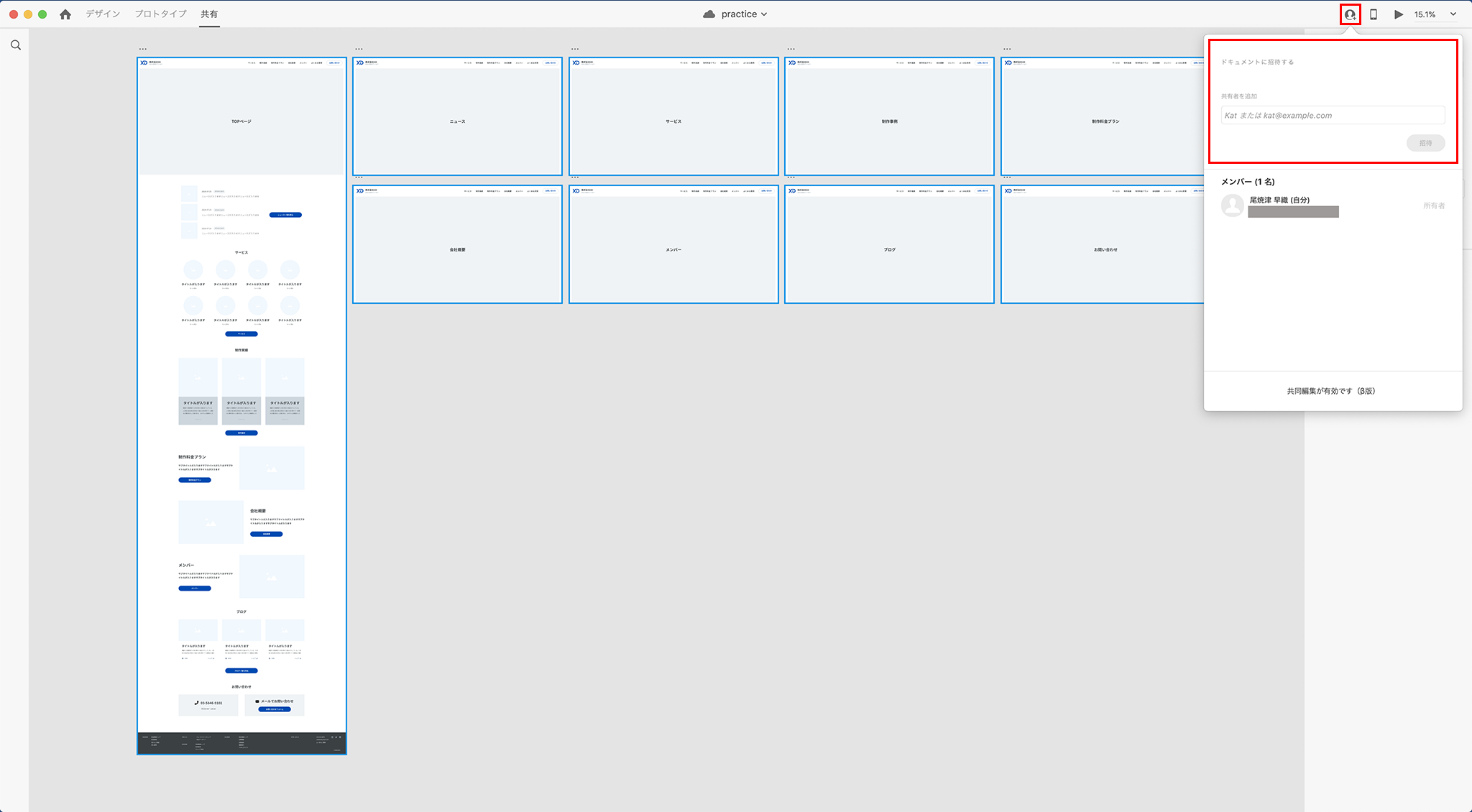 さらにAdobe XDを持っている人同士なら、共同作業も可能です。