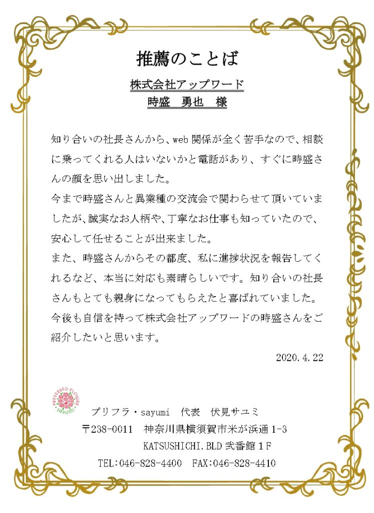 この言葉に恥じぬようこれからもアップワードのサービスを色々な方に提供していきます。