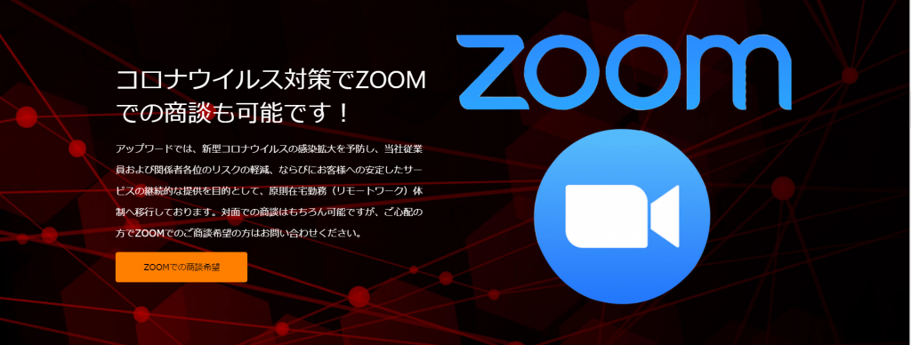 アップワードではZOOMでのお打ち合わせも可能ですのでお客様にお申し付けください。