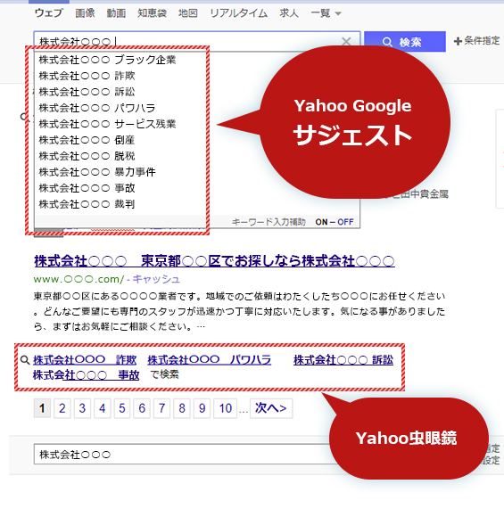 GoogleやYahoo!の検索エンジンで検索する前やした後にネガティブなワードが出てしまうような事があります。