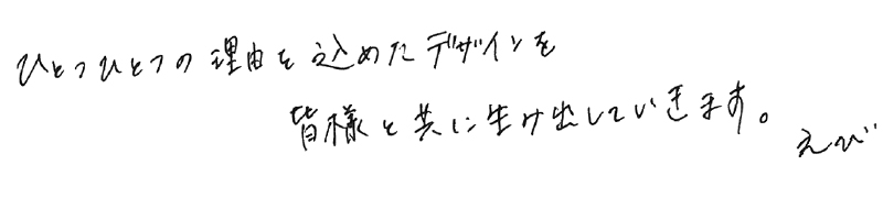 学生の頃先生がそうお話しされた講義中の風景は今でもふとした瞬間に思い出します。 そりゃそうなんですけど、これが目に映るものたちはすべて誰かのために設計・制作されて世に出されていると再認識した時でした。 お客様のご要望の裏にどんな理由があるかを理解し、デザインに落とし込むことを大切していきます。